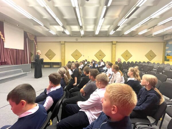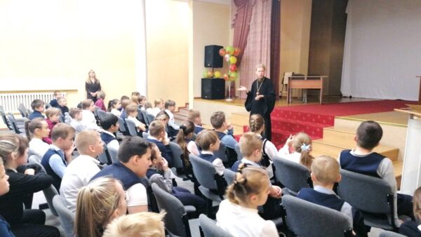 В ходе посещения отец Димитрий встретился с учащимися четвертых классов и провел с ними беседу на о Православии, отношений с Богом, заповеди любви и молитве.