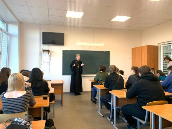 В ходе посещения отец Димитрий встретился со студентами первого курса и провел беседу о смысле духовной жизни и взаимоотношений с Богом. По окончании встречи администрация колледжа вручила гостю благодарственное письмо за активное участие в духовно-нравственном воспитании студентов.