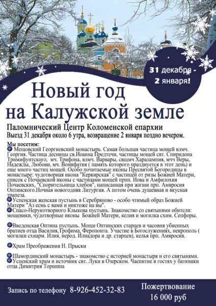 28.11.2025 от kolomna.blagochin Паломнические поездки Просмотров (3) Поделиться:ВКонтактеTwitterБольшеGoogleОдноклассникиTumblrPinterest