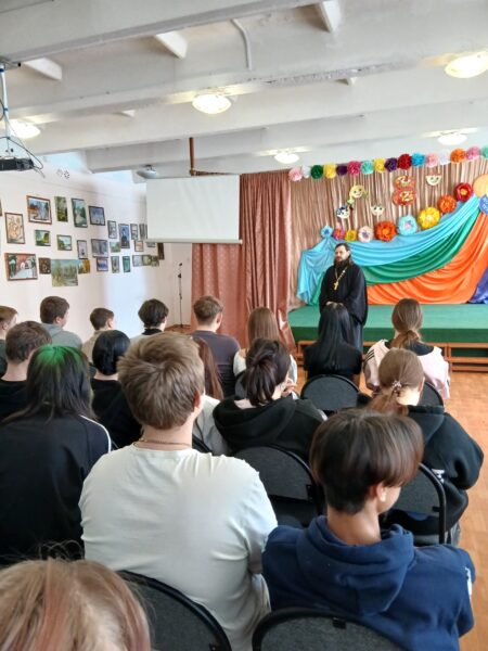 16 марта настоятель Владимирского храма поселка Индустрия иерей Илия Царьков провел открытый урок для учащихся 8 и 9 классов школы поселка Индустрия, посвященный Дню православной книги.