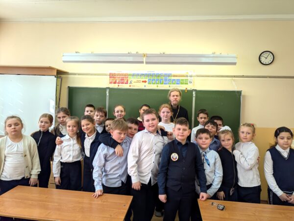 16 марта ответственный во 2-ом Коломенском благочинии за религиозное образование и катехизацию иерей Димитрий Шаповалов посетил среднюю школу № 30 города Коломны. В ходе посещения отец Димитрий встретился с учащимися 2Б класса и провел урок о любви, милосердии, жертвенности, рассказал детям о Кресте Господнем и ответил на их вопросы.